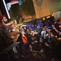 Mission accomplished. Last night, seeing Taylor there with his wife and decades worth of friends, and knowing about how he and Deb adopted their amazing daughter years ago from an orphanage in Africa, and thinking back over an amazing and ongoing career that has had so many important chapters it came to me again that, while we have to be careful who we turn into heroes, some people are up to the job. Thirty years later and Steve Taylor hasn’t lost a beat. Last night we crazy fans knew that we had chosen our hero wisely when we became Steve Taylor fans. After the show Taylor, with the help of designated tour guide and pre-cleared busker Don Chaffer of Waterdeep, took the audience on a walking tour of downtown Nashville, culminating with cookies and milk on the pedestrian bridge over the Cumberland.