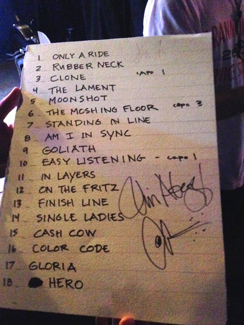 Thanks to Andy Peterson for sharing his Abegg-autographed set-list from the show!